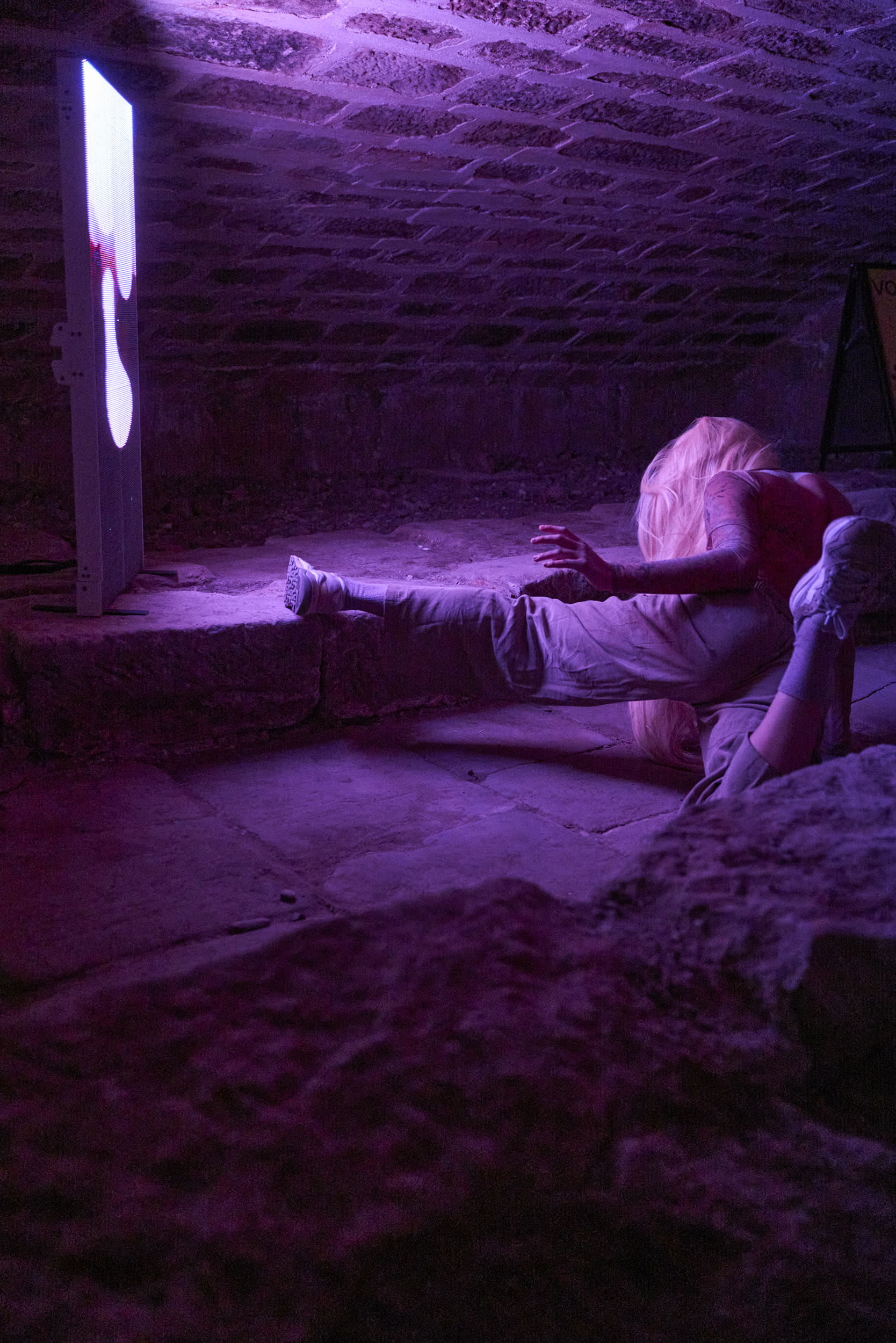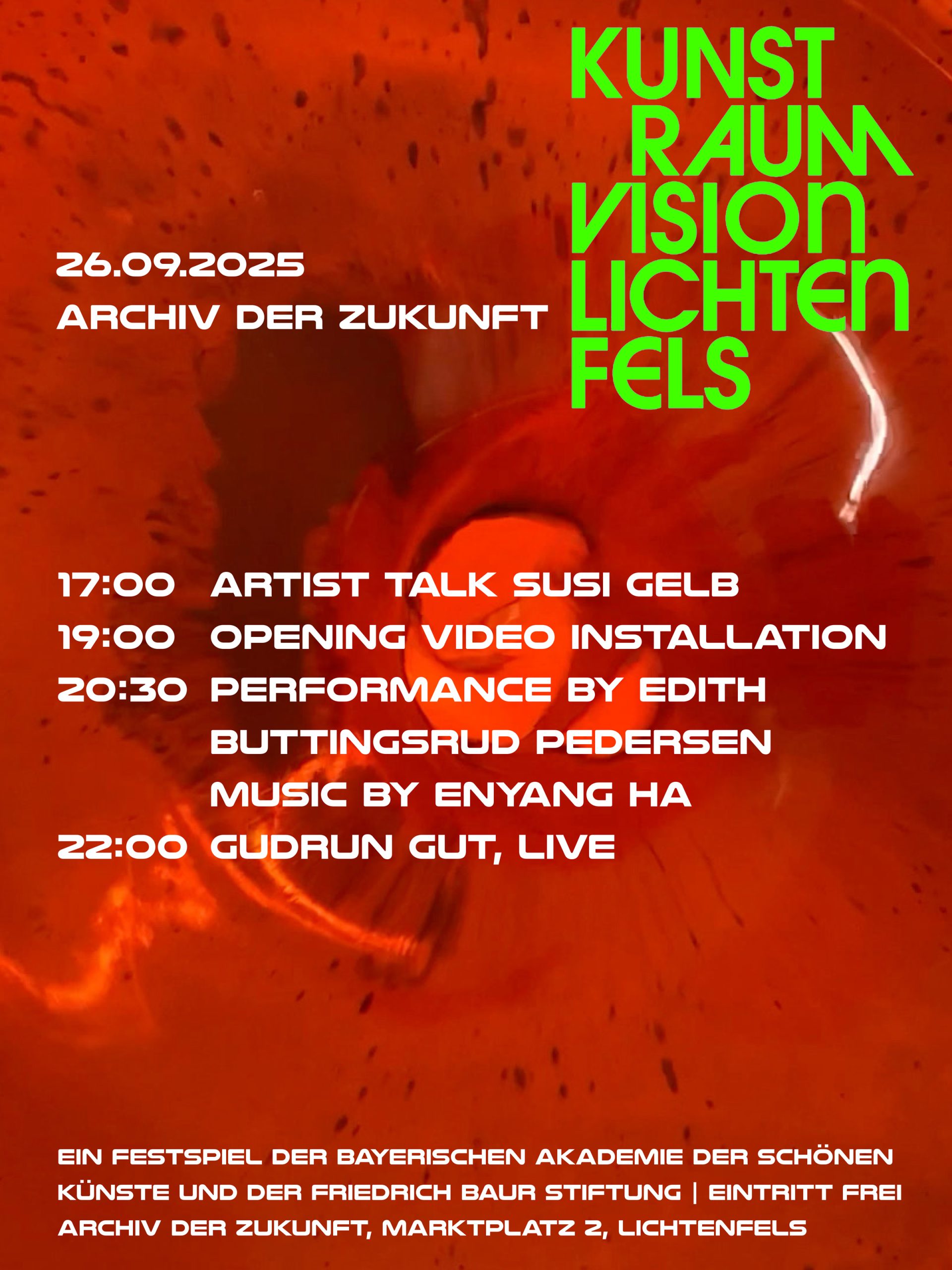01: Monolith Compound 05, 2018, installation view at Archiv der Zukunft Lichtenfels, 2025, 02/03: Archeology of the Future, 2025, performance by Susi Gelb and Edith Buttingsrud Pedersen with music by Enyang Ha, dancers: Giada Grieco, Roberta Ricci, Edith Buttingsrud Pedersen